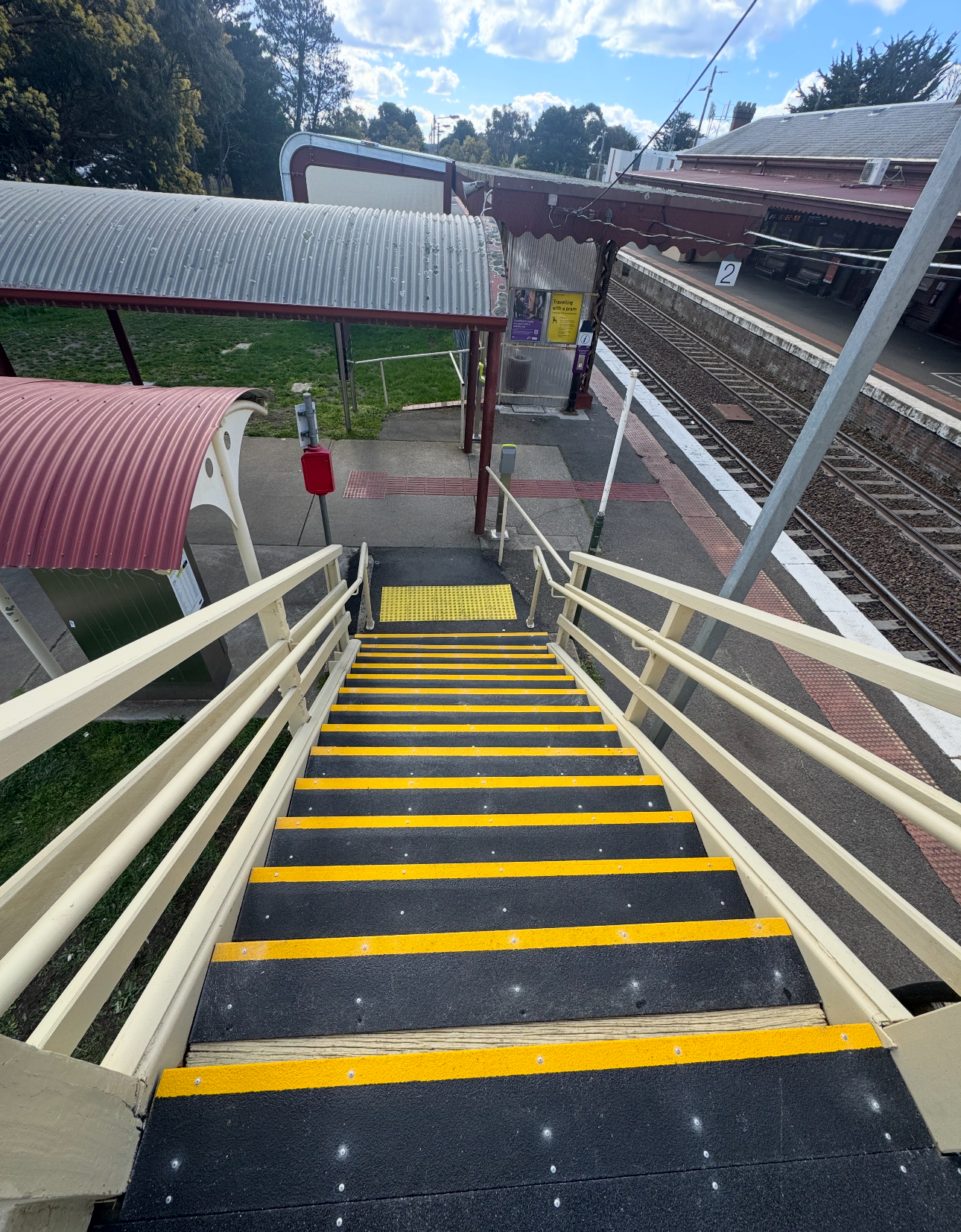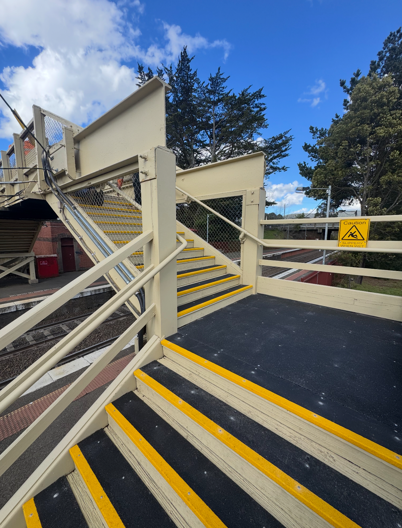 The completed works provide safe, clearly defined pedestrian access across the stairs, landings, and heritage footbridge, ensuring improved safety and long-term performance for daily station users while preserving the character of the site.
