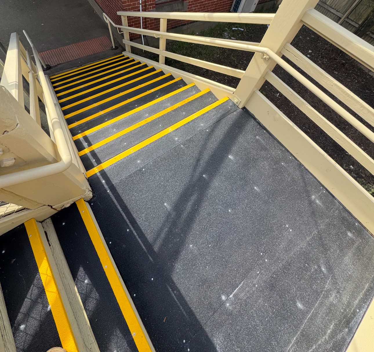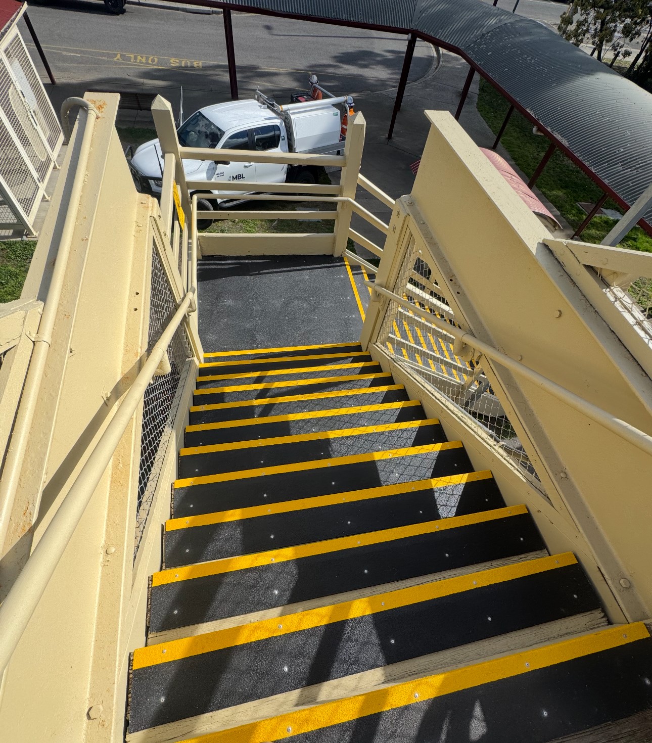 The SPG Stair Tread Covers and Anti-Slip Plates were successfully installed by MBL Maintenance, transforming the existing access areas into durable, slip-resistant, and compliant surfaces.